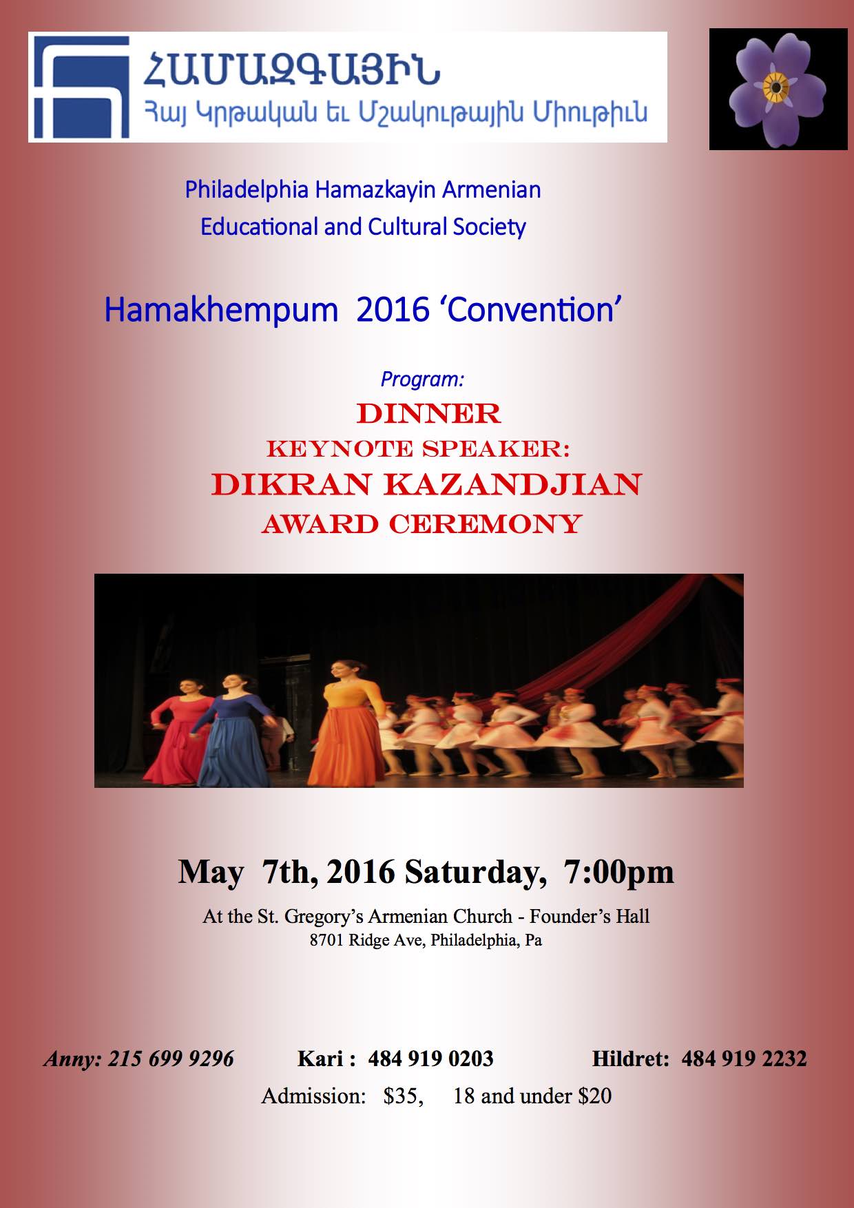Hamazkayin Hamakhempum 2016 – in Philadelphia May 7th