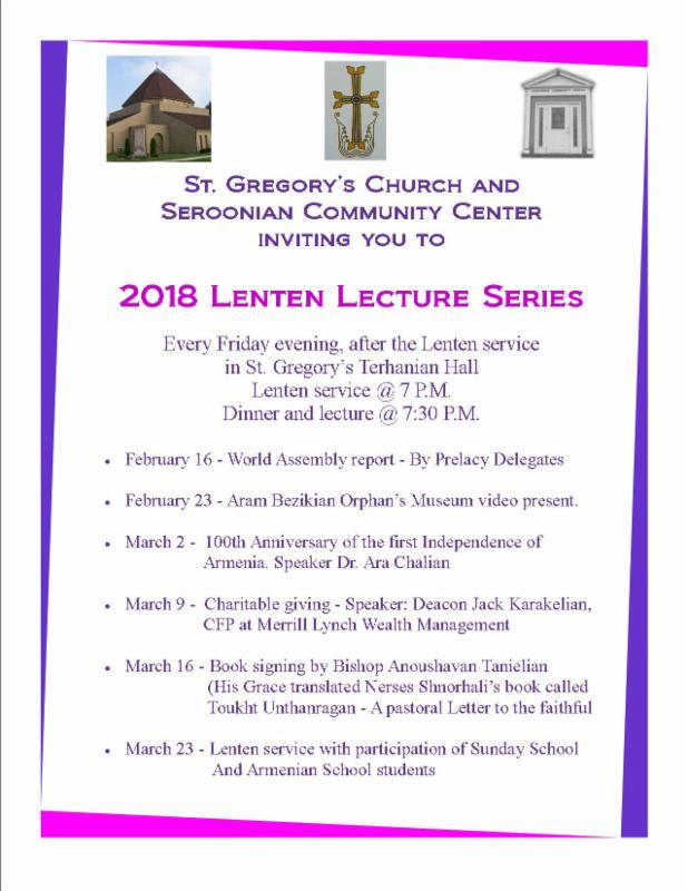 Lenten 2018 Lecture Series at St Gregory’s Terhanian Hall