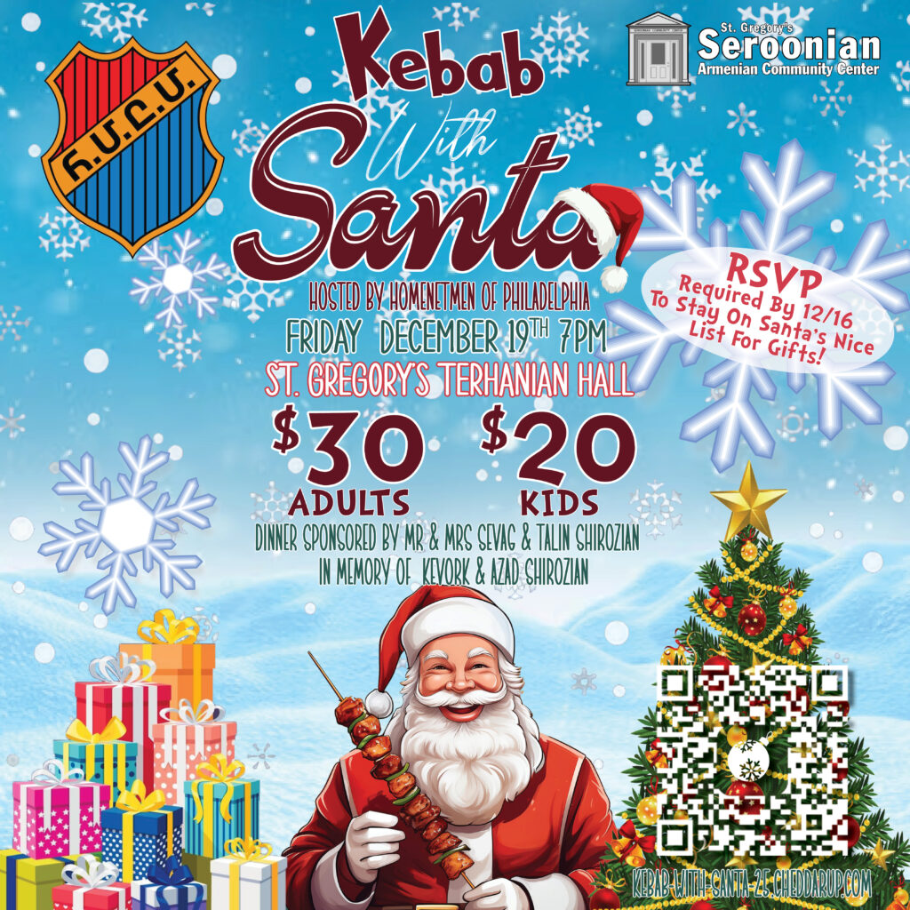 Join Us This Friday December 219th At St. Gregory’s Terhanian Hall For Kebab With Santa